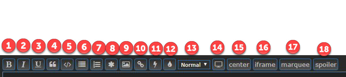 9. Insert image button, this is if you want to link to a picture from elsewhere on the Internet.