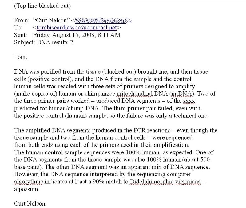 Email from Curt Nelson to Tom Biscardi (Georgia Hoax)