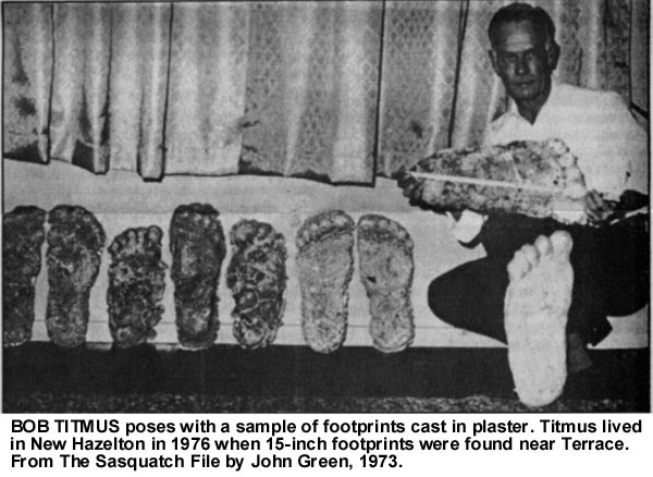 Robert "Bob" Titmus of Harrison Hot Springs, British Columbia Canada has spent about half a century tracking and hunting in the Pacific Northwest from California to Alaska. His fieldwork over several decades in North America's most rugged Terrain has convinced him that the Sasquatch does exist. His fieldwork was dedicated to establishing this fact. His expertise as an animal tracker is recognized and he has undoubtedly had more field experience in tracking and searching for the Sasquatch than anyone else alive, layman or scientist.
