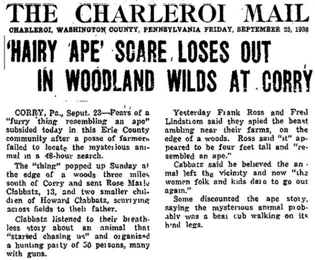 The “thing” popped up Sunday at the edge of a woods three miles south of Corry and Rose Marie Clabbatz, 13, and two smaller children of Howard Clabbatz, scurrying across fields to their father.