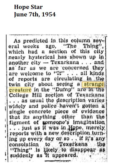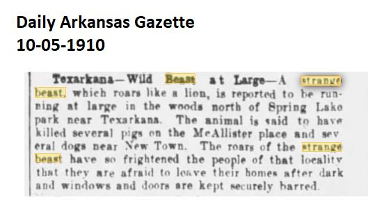 Early Newspaper articles of the Fouke Monster