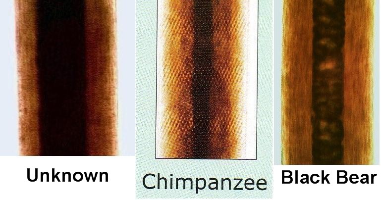 matched nothing. Bear was ruled out as well. Faranbach declared it bear hair because of the medulla, but