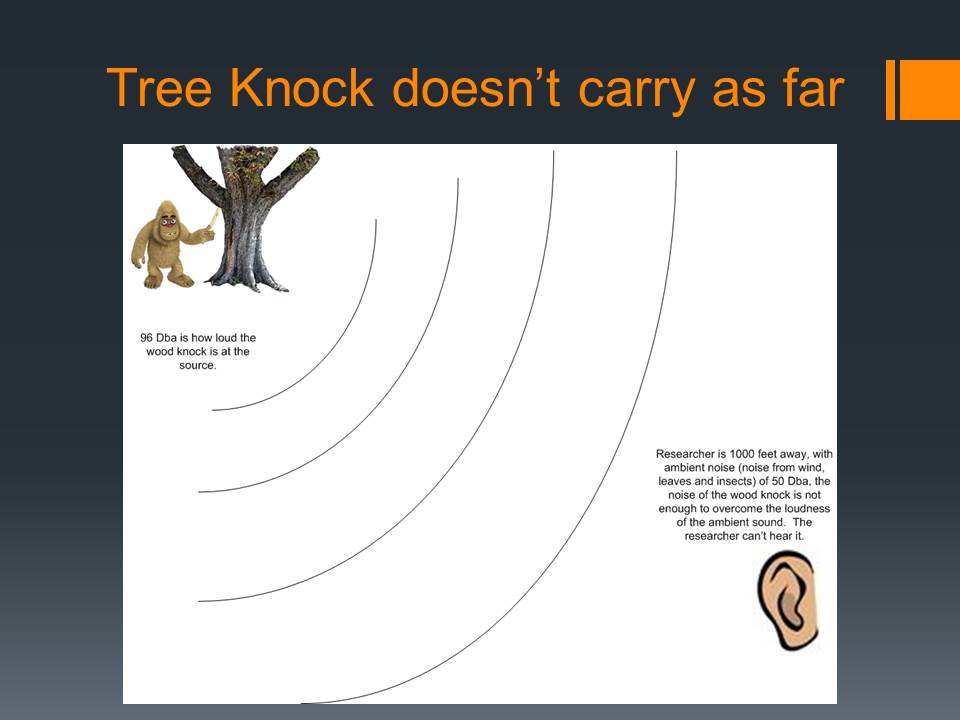 The MABRC and APES groups conducted experiments to see if the distance of wood knocks and vocalizations varied under different conditions and at what distances they could be heard from. What the data showed afterwards, along with the personal experiences of those who participated, it opened their eyes to some dramatic results.