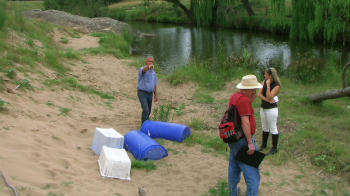 Lloyd had phoned Rex and Lloyd had covered four of them with large plastic containers which helped to preserve them till we arrived. The sand is hard on the surface in places and soft elsewhere. This creature had walked along the creek bank, then walked across this sandy area and then across a small ridge and then down along the creek to disappear at an unknown location as the prints faded after the sand finished, but were going down this general direction-though no other prints were discovered down that way, in the direction these prints were travelling to.