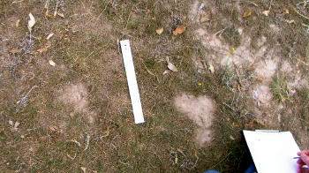 Once we knew the location of the main two tracks it was just a matter of working out the stride and then doing experiments, where I would do a series of stretches and then finding another print and do a long stretch and see how far the stride was from the original prints. The photographs show a ruler between the second print and the third print.'