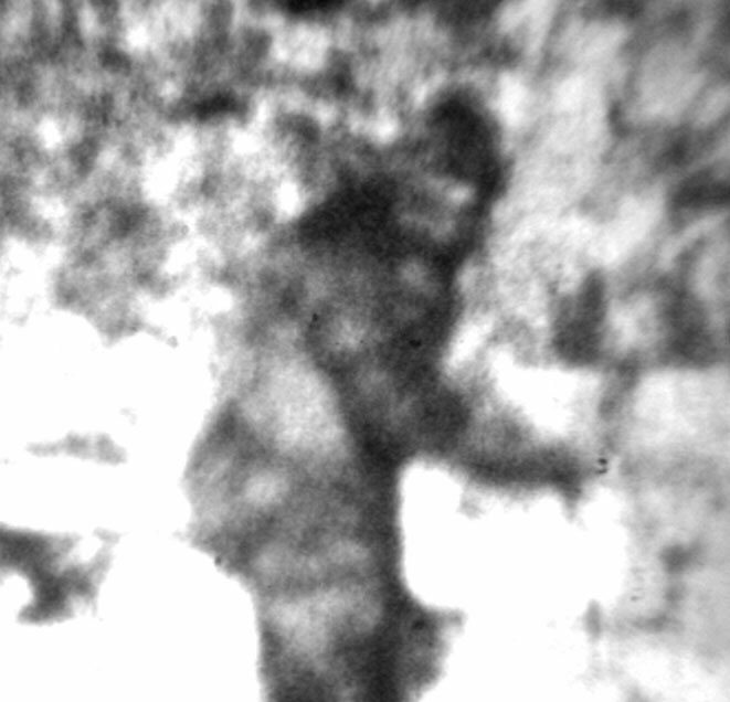 Image: Says MK, "The quality of this transparency cannot be overstated. Very basic features are discernible here. In this enlargement filtration is used along with contrast boost to reveal the true face of the Patterson subject."