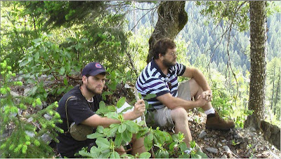 Images, most courtesy of MK Davis: above, at the Bluff Creek and Klamath River confluence; below, with son Bryan up a creek off the Creek, on a recent expedition.