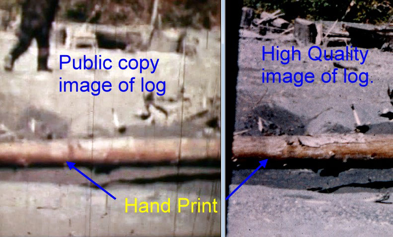 Last June you sent me an image of Patty that suggested she had a braided top-knot of hair, not a pointed sagittal crest. Do you still hold with that idea? And, since you just mentioned it--WHAT is the significance of that HAND PRINT on the log, in the photo you attached? How did it get there? What is it from? What is it made of? And why is it there?