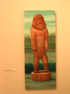 WIEDEL: In the paintings, bigfoot represents something that metaphorically mimics the sometimes eerie landscape of Eureka. Bigfoot has only been seen in fleeting ways, like a carload of mimes. You see strange things in Eureka. I like to paint things that are strange, but could very well be for real. It's more interesting to me than purely fantastical art.