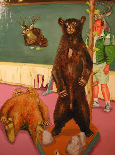 WIEDEL: I think bigfoot is the representative for the wilderness. Since this town is butted right up against the wilderness, it only makes sense that bigfoot should make an appearance in the paintings now and then, as a representative. It's more fun to paint bigfoot than a bunch of trees.