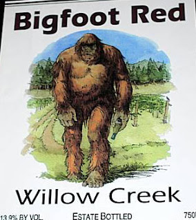 And let's not forget, Willow Creek's own BIGFOOT RED, made by SENTINEL WINERY, 2263 Patterson RdWillow Creek, CA. The wine is available at the winery, or else exclusively at CINNABAR SAM'S RESTAURANT, on the main drag in town. Get more info. here: http://www.winesandvines.com/directoryonline/index.cfm?dataReportWinery=1&lookupdata=1&entityid=15873