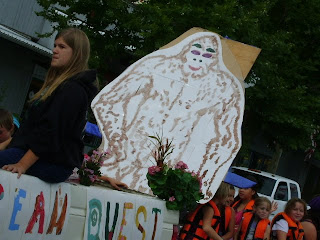 There was even an appearance of the Sasquatch costume of infamous Georgia Gorilla note, this one fully animated, not frozen in ice with guts tossed on top. Some cute Bigfoot suits and masks were presented on floats, a wild guy in a gorilla suit ran through some antics,