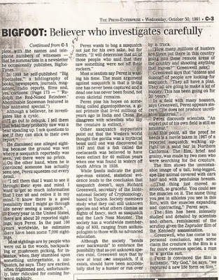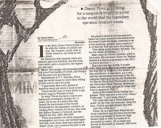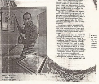 Here's a groovy early article featuring Bigfoot scholar/journalist and "hardcore Sasquatch investigator-hunter," Daniel Perez. It's from the Press-Enterprise, October 30, 1991. Apparently, David Paulides finds this amusing.