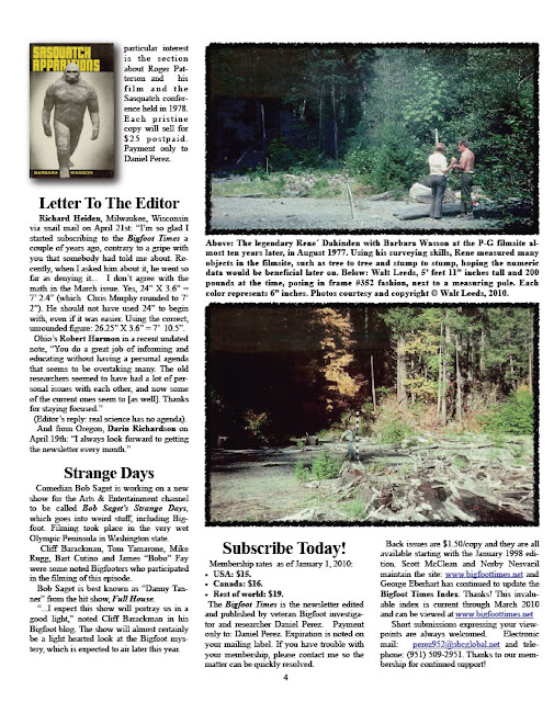 Daniel Perez is providing us this issue with permission to post it. Perhaps you’d also be inclined to subscribe—we should support the noble field of actual print publishing--a bold endeavor in these days. And it’s well worth it, too. See below the newsletter for links. The pages become a more legible size if you click on them, or right-click on them and select to open in new tab or window if just clicking doesn't work. Once enlarged, use the "Zoom" funtion in "View." These are the best copies we could obtain without special software, and within the Blogspot limits for graphics. They may be saved onto your computer and then enlarged with any photo editing software. To get the full, high quality version one should subscribe, come in to Bigfoot Books and get a free hard-copy print version, or ask Daniel (he might be inclined to email this one in PDF to you without charge; we emphasize... might.)