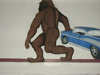 Here are a few cool things that we have acquired recently, thanks to Vince S. and Daniel Perez in large measure. Also featured are two new pieces of Bigfoot Iconography to appear recently in Willow Creek, one at the Willow Creek Motel, and another at Bigfoot Books. The first is yet another roadside Bigfoot image. The latter is a painting by Bryan Hart, generously brought in to our shop for display.