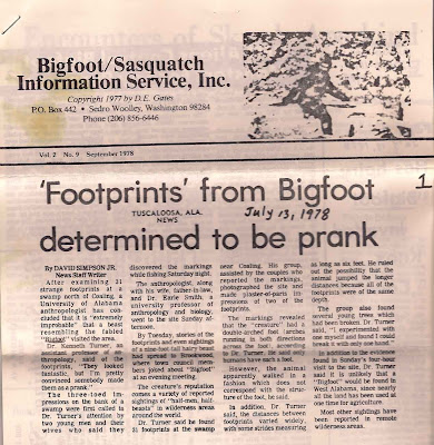We find these too fascinating to just leave them on our hard drive. In large measure, despite all of the books and television shows on the topic, the minute aspects of the history of Bigfooting and its culture are largely lost, ephemeral, preserved only in yellowing newspaper clippings, old tattered newsletters, odds and ends in boxes in the closets of nerds from the 1970s and 80s.. These are things that often get thrown in the trash rather than preserved as the important documents they are. Sometimes a web site goes down forever, as recently happened with the fine (and sorely missed) BLOGSQUATCHER page, and is lost to all but unreliable human memory.