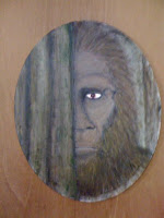We had a nice visit from Bryan, Shannon and Hercules Hart today in the shop. Bryan, a fine Bigfoot artist among many other things, brought us a nice oil painting of a giant hairy hominoid practicing tree-hiding technique for display at our shop. This one is for sale for $300.00.