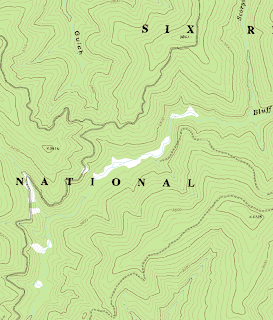 Image: Yet another Bluff Creek map, this one in wider scale, film site above the second "NA" in "National."