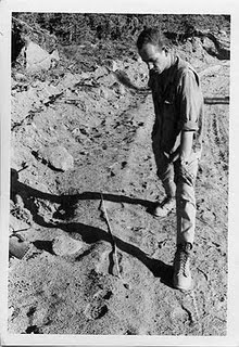 AL HODGSON: Yeah. That’s right. John told me that he was, that he had them with the rifle at ready all the time, they was out there, it was like they would be shot, like next to this, and uh… [Chuckles]