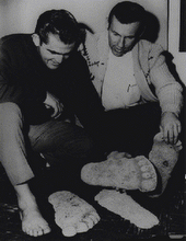 Image: Historical, Roger and Bob Gimlin pose with the casts they made at the site of the Bluff Creek film.