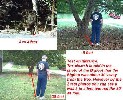 The creature is NOT only five feet from your "bob gimlin" face. Measurements done on-site show 30-58 feet apprx to nearest trees. Bob must be a GIANT! It is optical illusion!