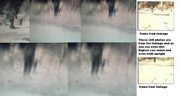 I show still from the footage showing the Bigfoot standing upright and even walking upright.