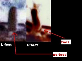 These are just very little questions that no one can answer not even Bob Gimlin can answer these questions. So you see I point out what can be seen in the footage not going on what other tell. I SHOW parts of the footage that shows the things I found in the footage. I am not just telling a story or report or even a blog. I am showing what is in the film it self and not just telling words.