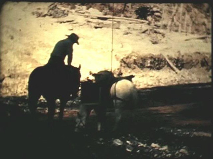 * Scenes from what I am calling Reel 1, that preceded the filming of the creature: Roger riding around with the horses down in Bluff Creek;