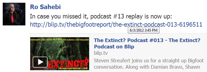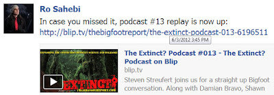 Listen to or watch the archived podcast here on BLIP, http://blip.tv/thebigfootreport/the-extinct-podcast-013-6196511, or get it via iTunes.