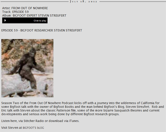 This blog is copyright and all that jazz, save for occasional small elements borrowed for "research" and information or satirical purposes only, 2003-2012, Bigfoot Books and Steven Streufert. Borrowings for non-commercial purposes will be tolerated without the revenge of Angry Bigfoot, if notification, credit, citation and a kindly web-link are given, preferably after contacting us and saying, Hello, like a normal person would before taking a cup of salt. No serious rip-offs of our material for vulgar commercial gain will be tolerated without major BF stomping action coming down on you, hu-man.