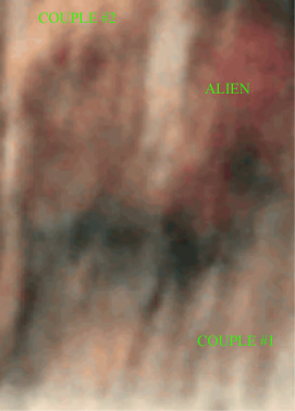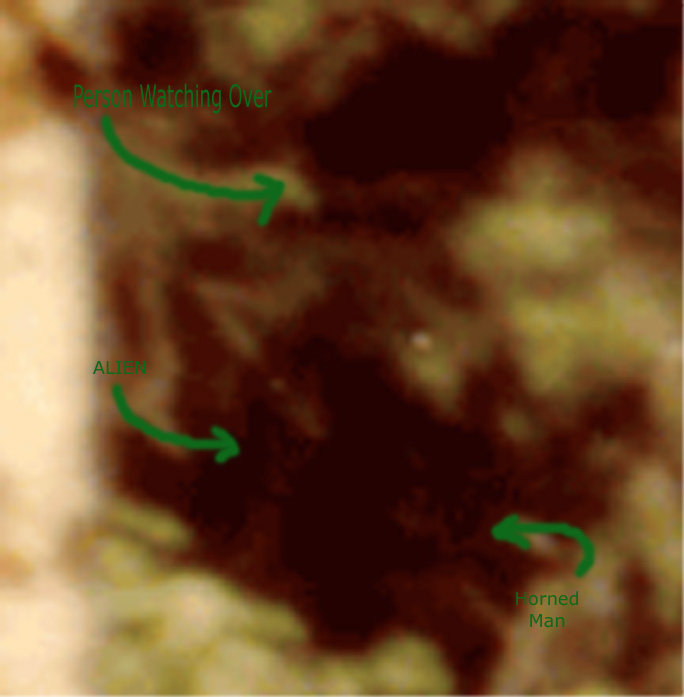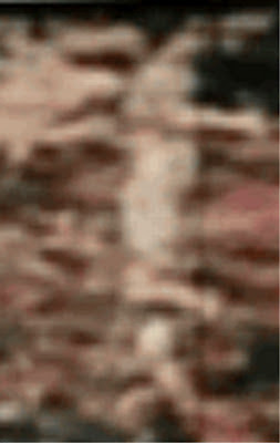 MK found many a thing in the PGF, so so may I. What follows is just the tip of the iceberg of things I've seen in the film, and managed to get screen captures of... it is said that blobsquatches are highly elusive, excellent at camouflage, and of course may simply walk through walls or into another dimension. Perhaps these don't quite live up to Beckjord's "Alien Android" theory, but we still hope you'll enjoy. YOU'LL HAVE TO CLICK THE IMAGES TO ENLARGE THEM, and be sure to stare at each for as long as it takes for your eyes to cross, hypnosis to set in, and the hidden secrets to become animate and real to you. All of these images were found in the REAL PGF, not elsewhere, nor were they Photoshopped into the photos.BLOBSQUATCHING THE PATTERSON-GIMLIN FILM,