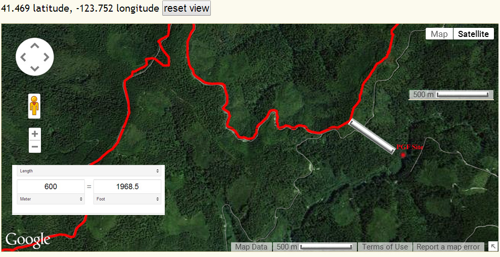 above Bluff Creek and the PGF site.