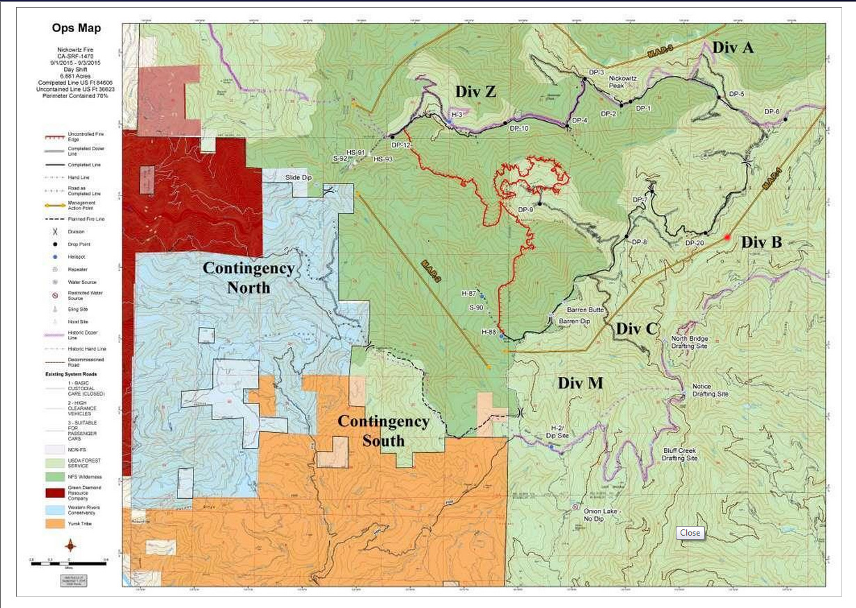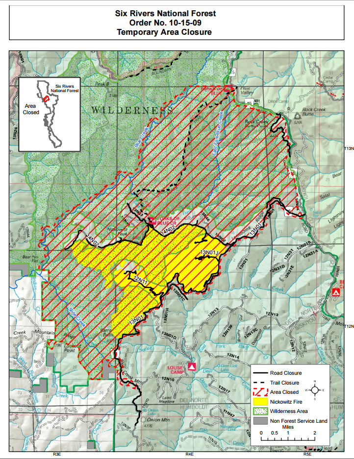BLUFF CREEK NOW OPEN AGAIN. Nickowitz Fire Still Burning, but Now Mostly Contained.