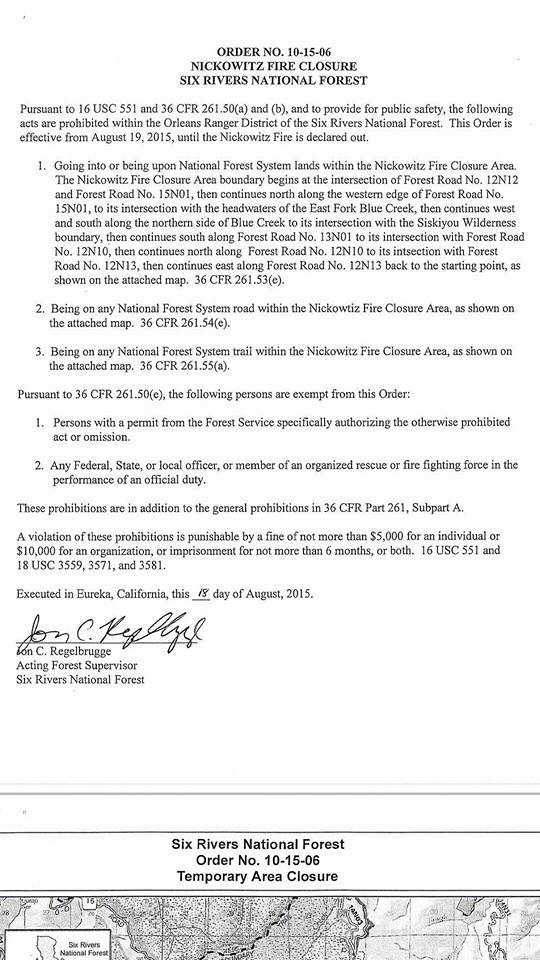 The USFS closure order. Click to Enlarge.