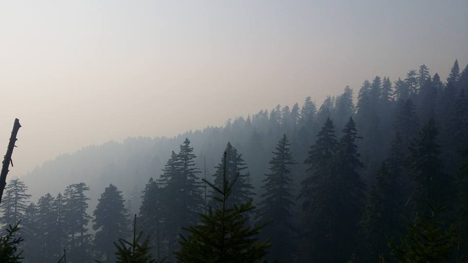 Nickowitz Fire Still Burning above Bluff Creek and Patterson-Gimlin Bigfoot Film Site