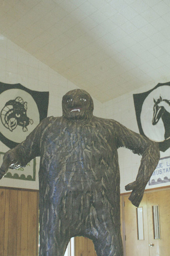| The rather huge Bigfoot statue brought into the Trinity Valley Elementary School gymnasium for the International Bigfoot Symposium. |