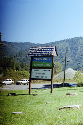 | Sign for at Trinity Valley Elementary School with International Bigfoot Symposium announcement. |