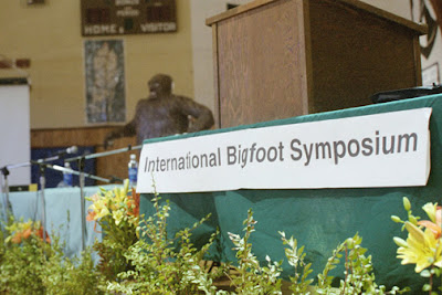 | The 2003 Willow Creek International Bigfoot Symposium podium. |