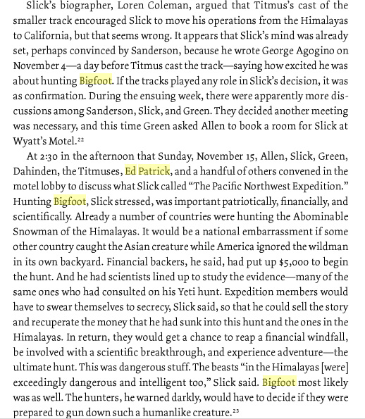 He said that he was hired on an expedition to track Bigfoot in the most remote country imaginable in winter. *** He was hunting a lot up "Happy Camp Mountain".