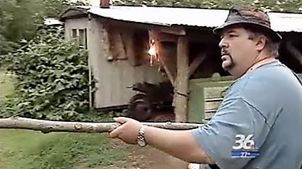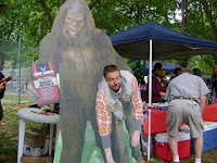 Why, when there are SO MANY Bigfoot reports all around the country, do the media latch onto one particular sighting report? In this case it is a classic rural mountain dweller who claims to have seen a blonde Bigfoot coming after his dogs after he utilized an odd-sounding coyote calling horn. Sure, he is missing a few teeth, is kind of overweight, and talks funny to the non-Southern ear. But what is the big deal? This kind of report is pretty darn ordinary. What, because he "rough-talked" it and chased it off with a stick? Obviously, Bigfoot doesn't matter to the media and the general public unless there is some sensationalism attached to it. It's all a good laugh, right? But little do they know! The non-Bigfooting public obviously is unaware of how pervasive and common Bigfoot sightings are. We ourselves received a bunch of emails from people notifying us of this new and fascinating sighting. Oh, really, we say, what else is new? That's every day in Willow Creek, practically. For all the people out there know, this could have been a real sighting. We wonder, though, at reports that that old carnival barker, TOM BISCARDI, was sighted around the same time, in the same state. Ah-hum!