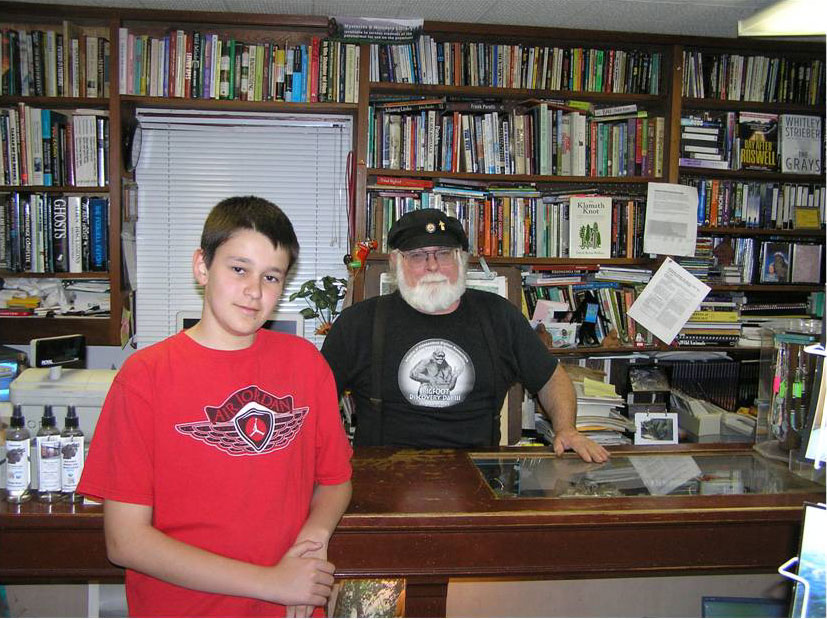 I wrote to Steven Streufert and I received a very thorough response. When asked if any one person inspired him, Steven said that many people had an impact on his passion, but what first intrigued him as a kid was the Patterson-Gimlin footage. Old school researchers like Rene Dahinden and Bob Gimilin get mentioned, but for current researchers, Steven was inspired by Daniel Perez, a writer for the BIGFOOT TIMES. Others like Matt Moneymaker, James Bobo Fay, and Cliff Barackman also interest Streufert. He said that he had in fact bought Bigfoot memorabilia other than books when I asked him that question He said that he'd buy anything Bigfoot related ranging from posters and stickers to Bigfoot casts and little statues. Other things he's bought are mugs, patches, and buttons. But his real passion is collecting Bigfoot Books, hence the name of his store being Bigfoot Books which is located in Willow Creek, California. When asked if there are any types of requirements or training for a job related to Bigfoot, Steven said something that makes sense, but never occurred to me.