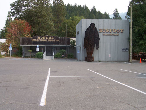 The Willow Creek-China Flat Museum is located in Willow Creek, California. “A specially built house holds this collection of Bigfoot print casts, photographs, maps, newspaper clips and other documents. A 25-foot-tall Bigfoot statue guards the entrance to the museum, and there's a research center adjacent to the museum. While heading to this site, take in the stunning scenery along California 299, also called the Bigfoot Scenic Byway” (Martin LA Times).