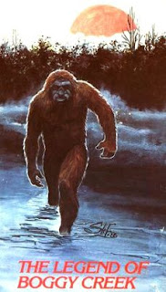 BIGFOOT BOOKS: For me it was seeing a triple feature at the drive-in that my mother used to take us to. It had Bigfoot, then UFO abductions, and then a movie about an infestation of giant mutant cockroaches. I remember being seriously spooked by all that, so much that we had to sleep in our parents' bed that night. I suppose it is, if I may interpolate from what you are saying, that the creature in Boggy Creek was something more than just a made-up movie monster, something more alive and tangible than myth and movies? All of that stuff is fascinating to a kid, but somehow Bigfoot has an appeal beyond the imagination and fantasy, even for adults: it retains the magic of myth and legend due to utter elusiveness, but is also a plausible creature that leaves convincing (if one really looks into it) physical evidence behind.
