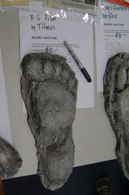 Unfortunately, we were so tired from the trip up and night before that we and our fellow-traveler decided to head back to the hotel for a bit of rest before heading out to the pub for dinner and a planned post-conference meet-up of Bigfooters. We knew we'd have to have some energy left for that (especially as we figured Autumn would be going), so we made the sacrifice. We're told that ESTHER STUTZMAN gave a good talk on local Native lore and stories. There was a question and answer session, and a plaster cast demonstration was done by JAIME AVALOS, using the actual real-live foot of Dr. JEFF MELDRUM. How could we have missed this? Luckily, the evening at Irish pub was fun and momentous, where we got to share our little table with Cliff Barackman and Autumn Williams.