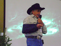 Returning from lunch we found BOB GIMLIN already in action, pacing the stage in his cowboy hat and duds, arm still in a sling from a horse-related accident. His movements back and forth embodied the excitement of his story of he and Roger Patterson capturing a Bigfoot on film in Bluff Creek, CA on October 20th, in 1967.