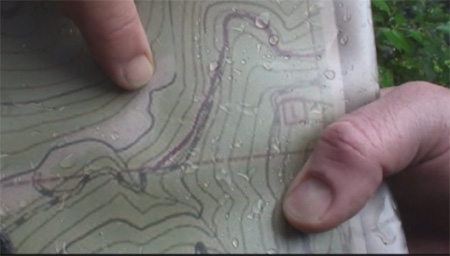 Pointing at Rene's Mark on the Map, upstream from the