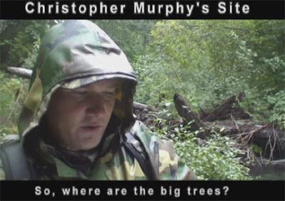 In preparation for this expedition I had sent out email inquiries to many of the major first generation players in Bigfooting still living. We received a very cordial response from both John Green and Peter Byrne. John Green, who said he had only been to the site twice, in 1968 and in 2003, stated that when he was last there he could not even recognize the place, and could not spot the "Big Tree" seen so prominently in the film. So, despite the fact that the place was clearly well known and documented at the time, it was lost to at least one of its major researchers. Hence, we had high hopes in hearing what Mr. Byrne had to say. He'd been there many times, though not as many as the late Rene Dahinden.