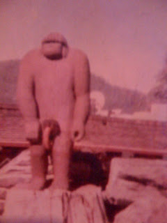 This image, found in SIMON LEGREE'S Roadhouse, in Hawkin's Bar (about ten miles east of Willow Creek on Hwy. 299), depicts a jokingly vandalized JIM MCCLARIN BIGFOOT STATUE in Willow Creek. This act of local hooliganism really happened, sometime back in the 1980s. It is not a Photoshop job.