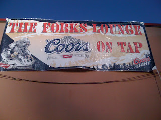One may also find the Coors Beer Wildman raging from banners and posters in many a bar or liquor store.Here's one sighting from Willow Creek's FORKS LOUNGE. The Forks is right across the street from the famous Bigfoot statue and the Bigfoot Collection, at the Museum.