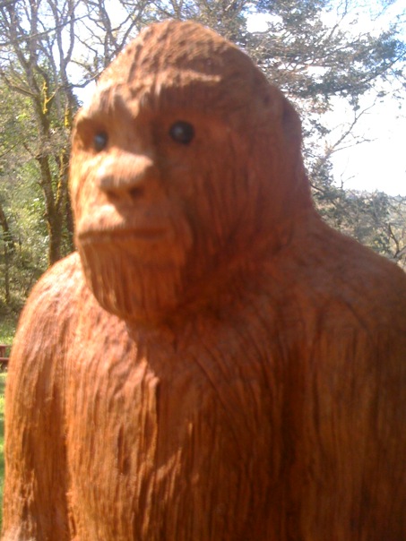 Right down from the Museum and the Mexican restaurant one will find the JIM MCCLARIN OH-MAH  BIGFOOT STATUE. This is the one, the famous and historical redwood carving that was in progress and nearing completion at the time the famous Bluff Creek Bigfoot film was shot. It is also just down the street from where Roger Patterson called Al Hodgson to announce the good news.